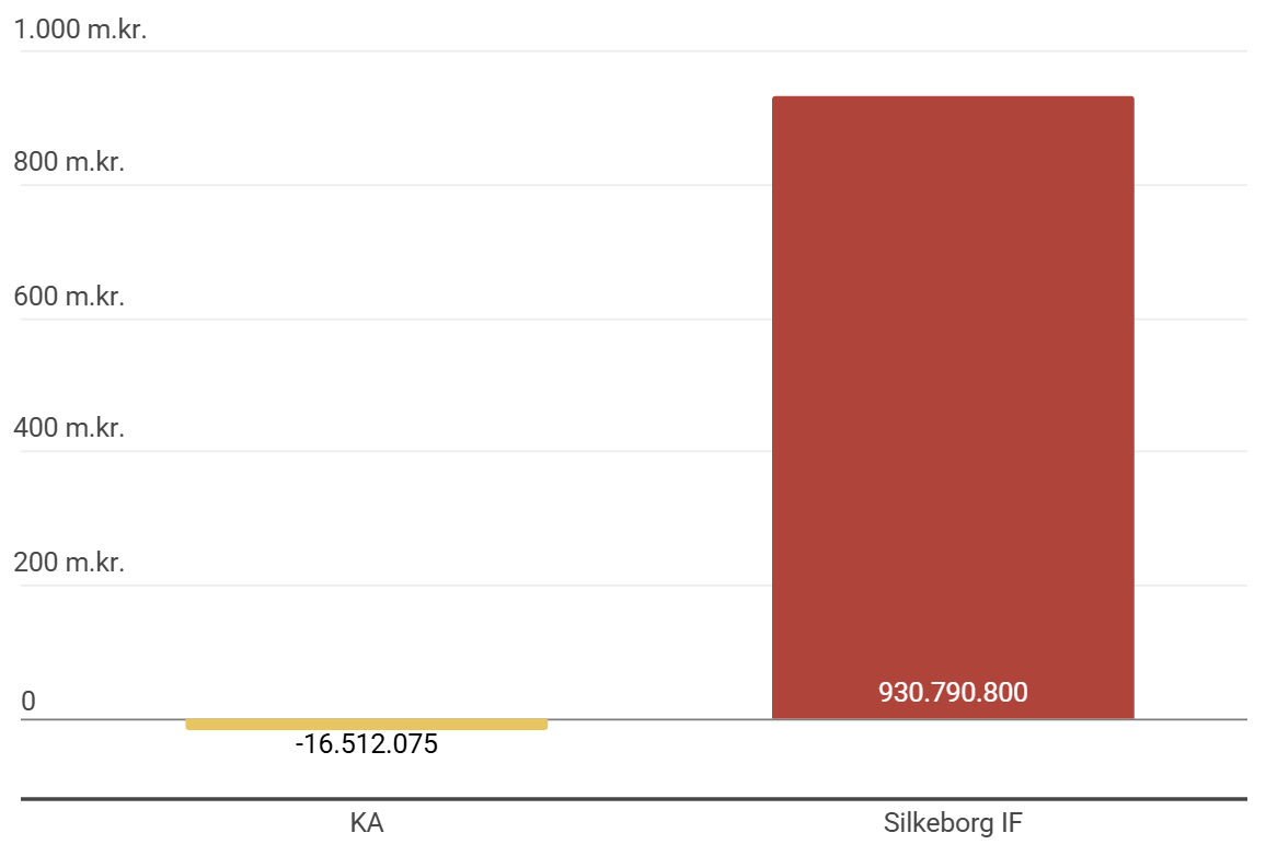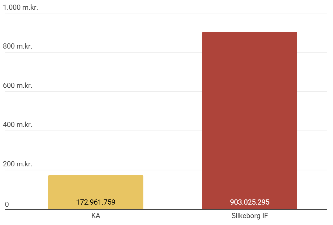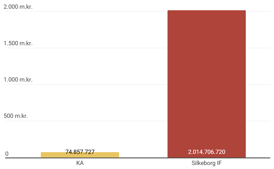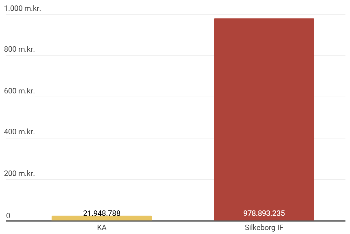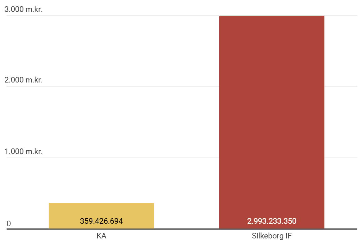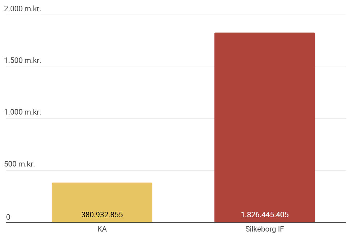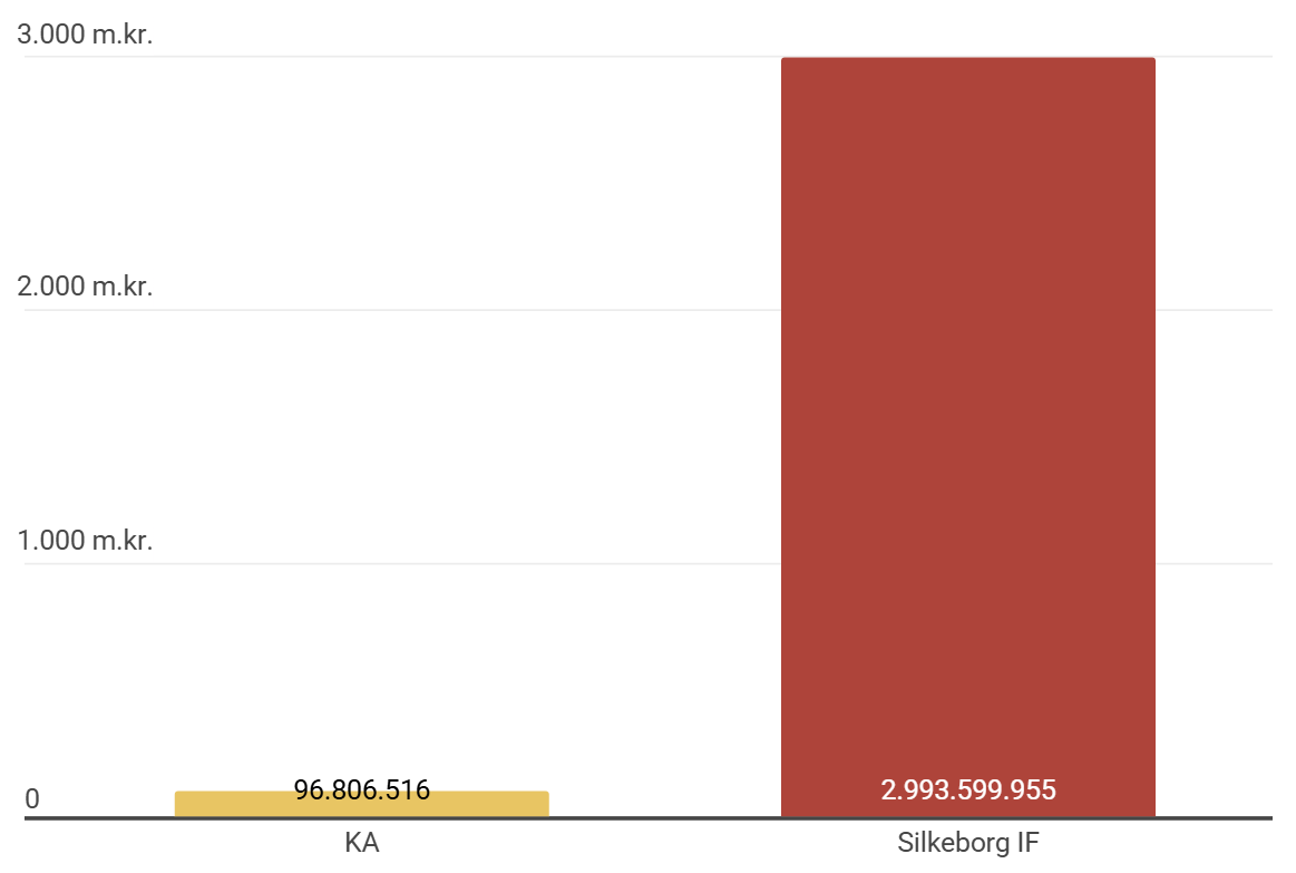 Eigið fé Silkeborg er 2.591,4% hærra en eigið fé KA.