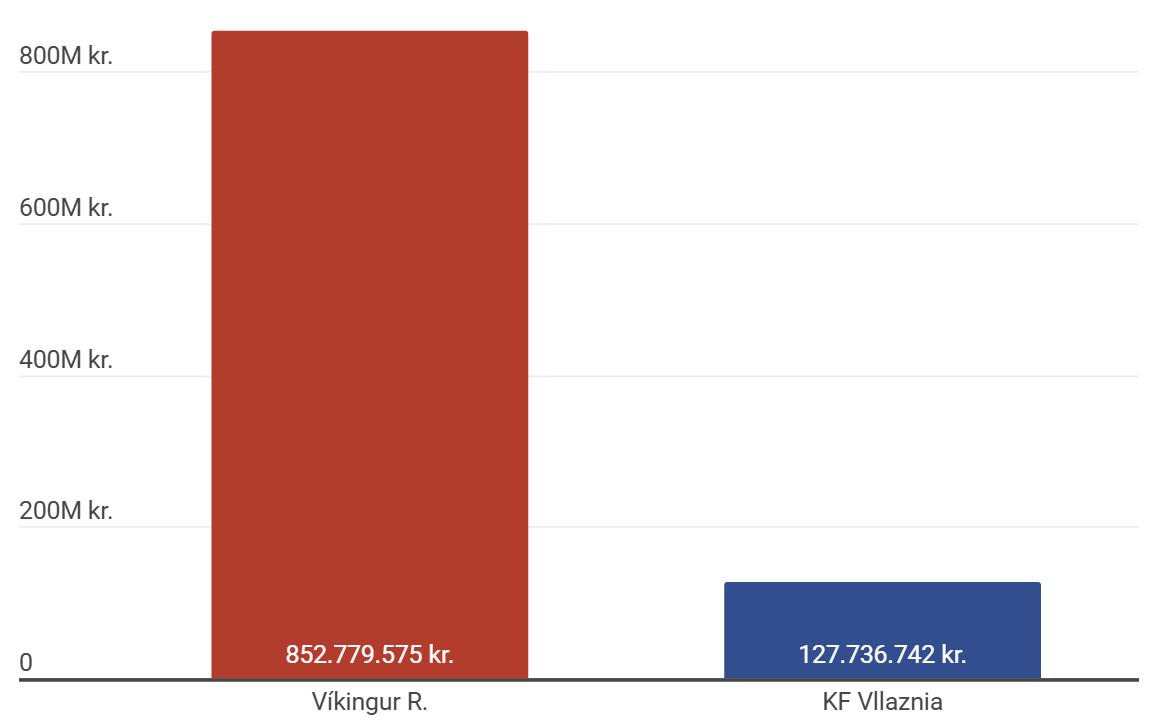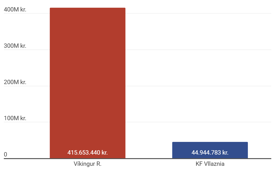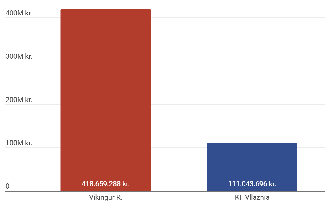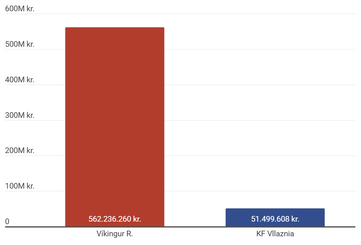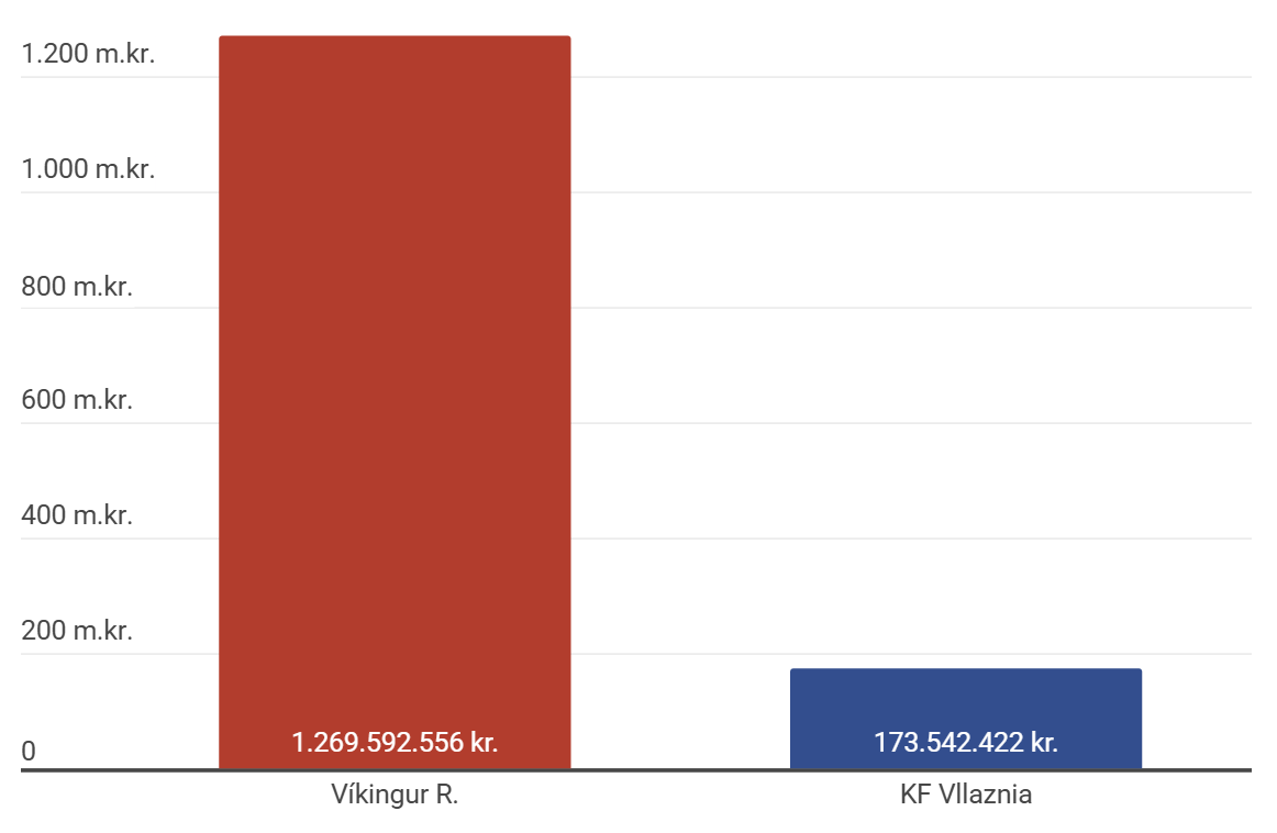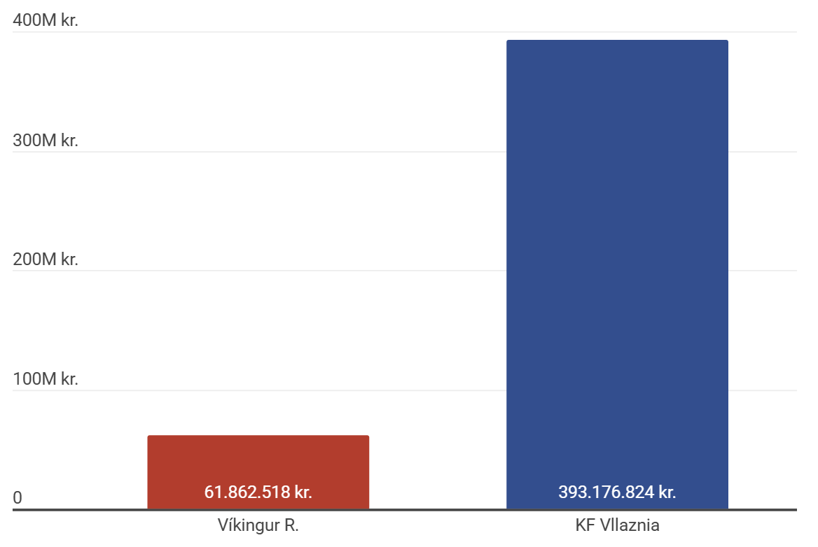 Eignir Víkings eru 991,7% hærri en eignir KF Vllaznia.