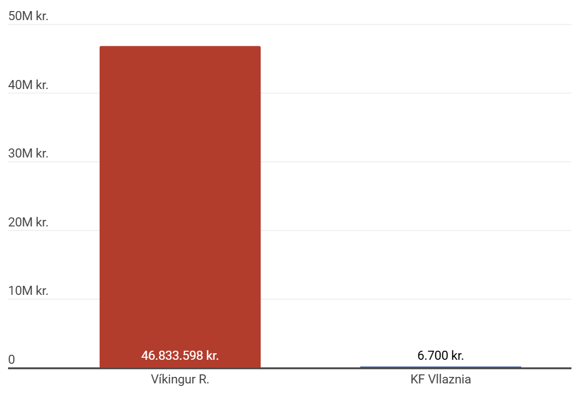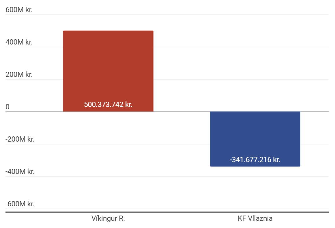 Afkoma Víkings er 824,8% hærri en afkoma KF Vllaznia.