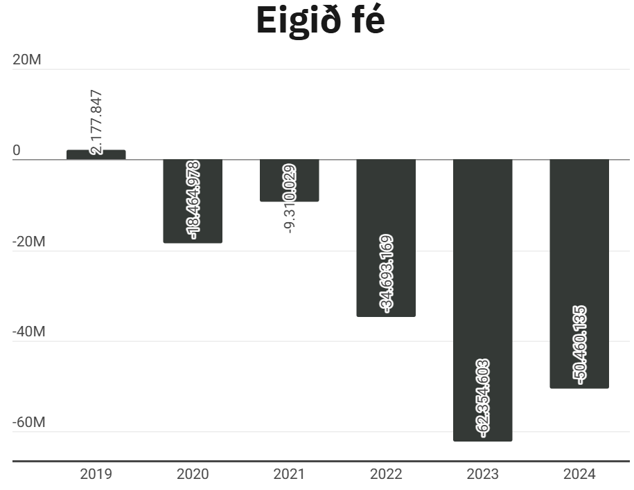 Eigið fé KR var neikvætt upp á tæplega 50,5 milljónir króna á síðasta ári en mikill taprekstur hefur verið á knattspyrnudeildinni síðustu árin. Knattspyrnudeildin var þó rekin með hagnaði upp á 11,7 milljónir króna í fyrra og handbært fé hækkaði um hátt í 16 milljónir króna og stóð í 19,4 milljónum króna í árslok 2024. Á sama tíma jukust skuldir um 28 milljónir króna en skuldahlutfallið minnkaði þó á milli ára eins og komið hefur fram.