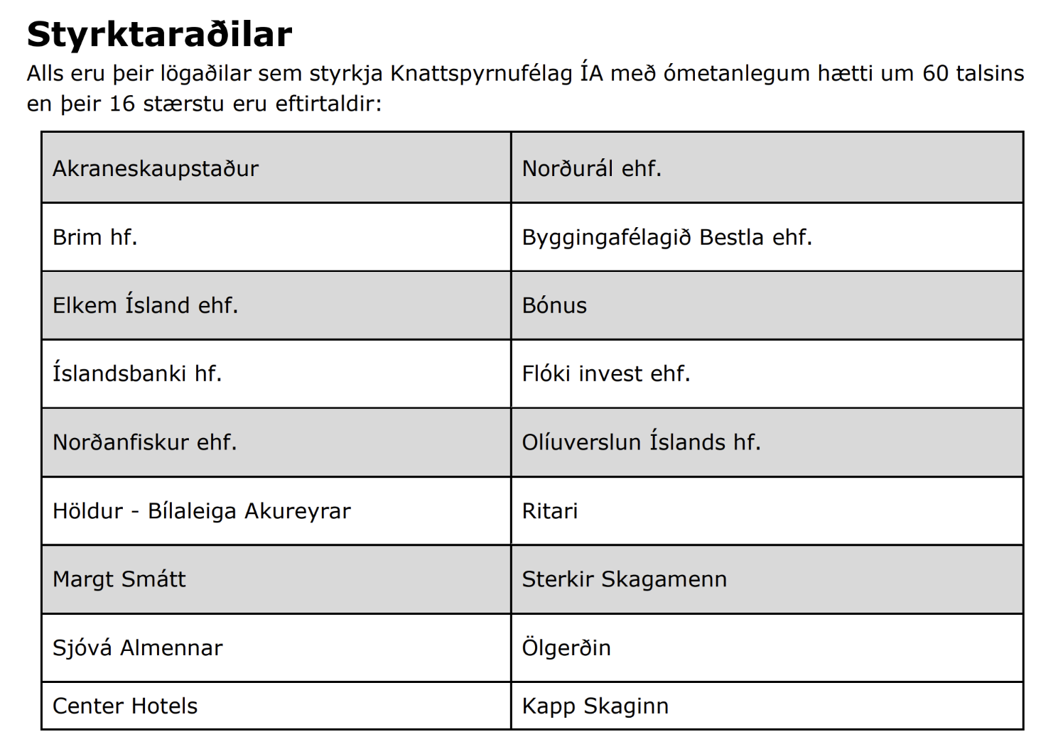 Í ársskýrslu ÍA eru 16 lögaðilar tilgreindir sem þeir sem styrkja ÍA hvað mest. Nokkur þessara fyrirtækja hafa auðvitað starfsemi á Akranesi eða þá nálægt bænum. Önnur er stórfyrirtæki með enga beina tengingu við Akranes, að mér vitandi, en styrkja eflaust íþróttahreyfinguna með margvíslegum hætti. Það áhugaverðasta er þó að sjá Flóki Invest ehf. á þessum lista en það félag er í 92,5% eigu Róberts Wessman, hvaðan sú tenging kemur er óljós.