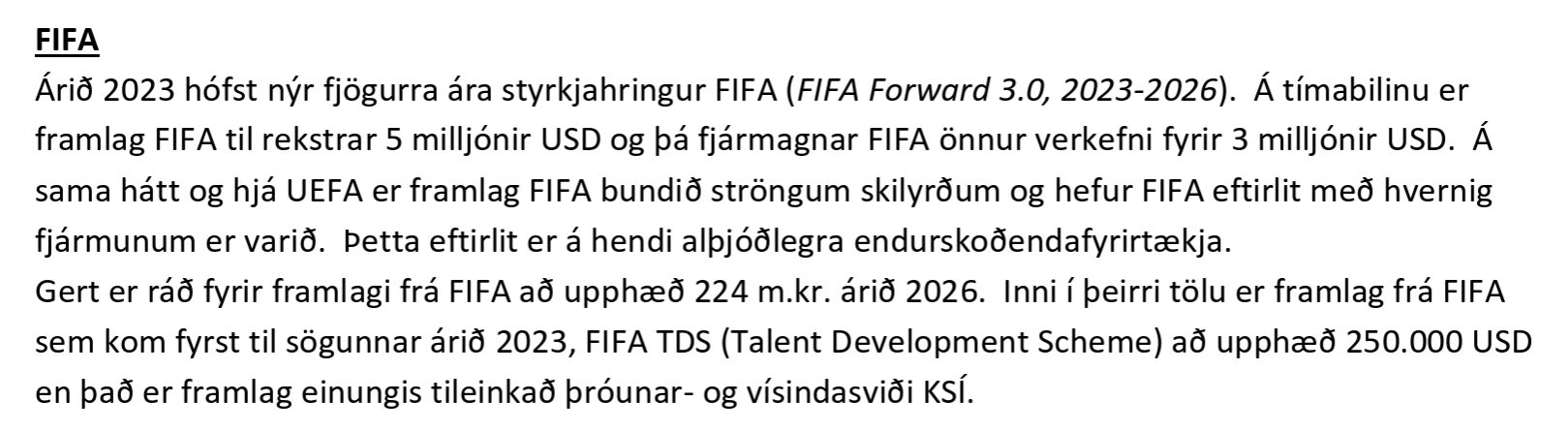 Að lokum þá gerir KSÍ ráð fyrir því að rekstrarhagnaður verði 74 milljónir króna en þegar fjármagnsliðir og ráðstöfun til aðildarfélaga hafa verið teknir inn í jöfnuna verður hagnaður ársins 2,6 milljónir króna.