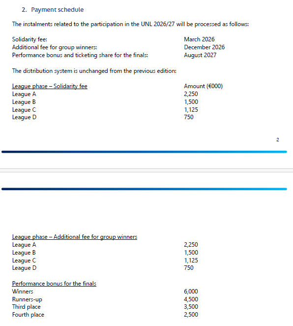 KSÍ gerir ráð fyrir því að rekstrartekjur ársins 2026 verði tæplega 1,9 milljarðar króna, hátt í 200 milljónum krónum lægra en áætlað er að rekstrartekjur ársins 2025 séu. Þessa lækkun má að mestu leyti rekja til lækkunar á tekjuliðnum, styrkir og framlög. Í glærukynningunni þar sem farið var yfir áætlunina er þessi 200 milljón króna lækkun skýrð af fjórum mismunandi áhrifaþáttum. Í fyrsta lagi er það lækkun á tekjum frá UEFA vegna þátttöku A-landsliðs karla í C-deild Þjóðadeildarinnar. Í dreifibréfi frá UEFA sem var birt 12. desember síðastliðinn má sjá að landslið sem taka þátt í C-deild Þjóðadeildarinnar fá 1.250.000 evrur, rúmlega 166 milljónir króna á núverandi gengi. Hins vegar fá landslið sem taka þátt í B-deild Þjóðadeildarinnar 1,5 milljónir evra, tæplega 222 milljónir króna. Það landslið sem vinnur svo sinn riðill fær þessa þátttökugreiðslu tvöfaldaða. Annar áhrifaþáttur sem var nefndur var lækkun á miðasölutekjum þar sem landsliðin munu mæta minna spennandi mótherjum. Þriðji áhrifaþátturinn var svo lækkun á greiðslum frá styrktaraðilum út af gengi liðsins, sem hljóta þá að vera auglýsingasamningar með klásúlum tengt árangri landsliðanna. Fjórði áhrifaþátturinn sem var nefndur var breyting á fyrirkomulagi á bókun tekna vegna UEFA fjárfestingastyrkja.