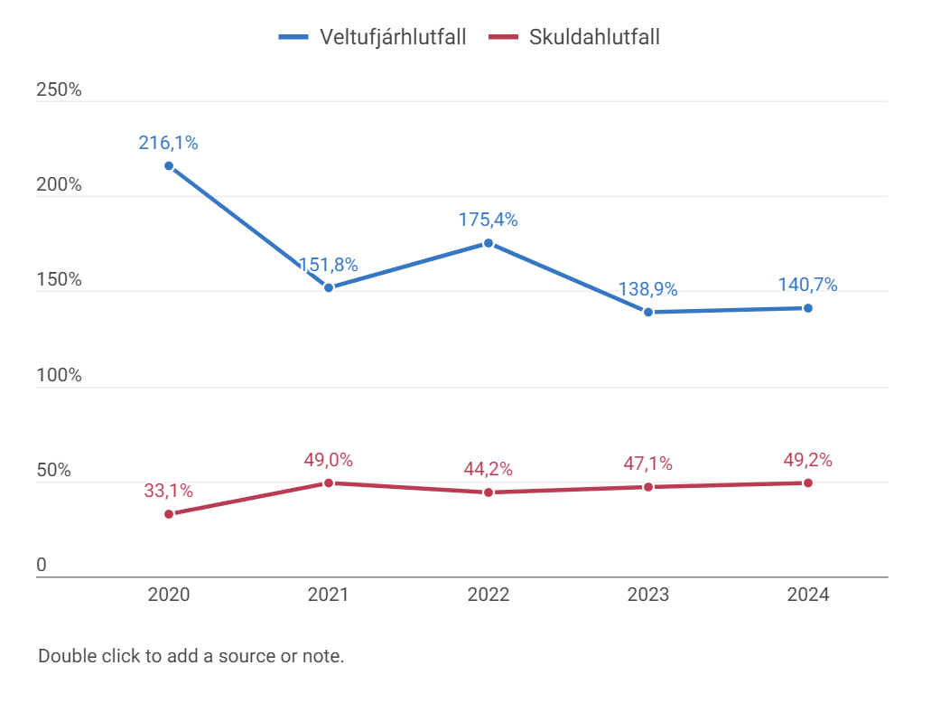 Skuldamál KSÍ eru í góðum farvegi miðað við 2024 ársreikninginn. Árið 2024 samanstóðu skuldir KSÍ af fyrirframinnheimtum tekjum (frá UEFA og FIFA), viðskiptaskuldum og öðrum skammtímaskuldum (að mestu leyti laun og launatengd gjöld). Skuldahlutfall KSÍ nam 49,2% árið 2024 og veltufjárhlutfallið nam 140,7%.