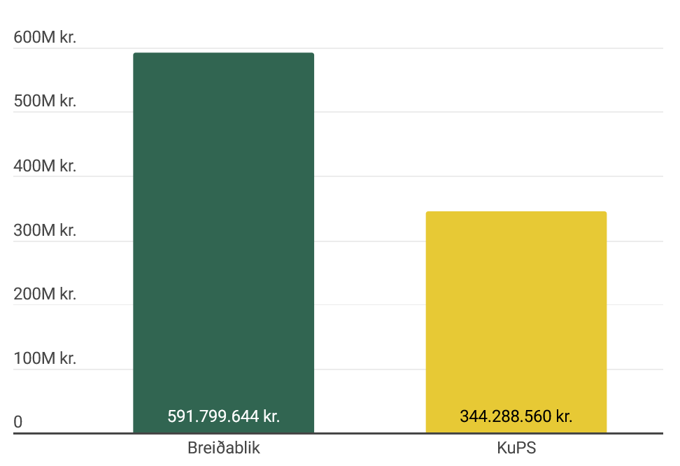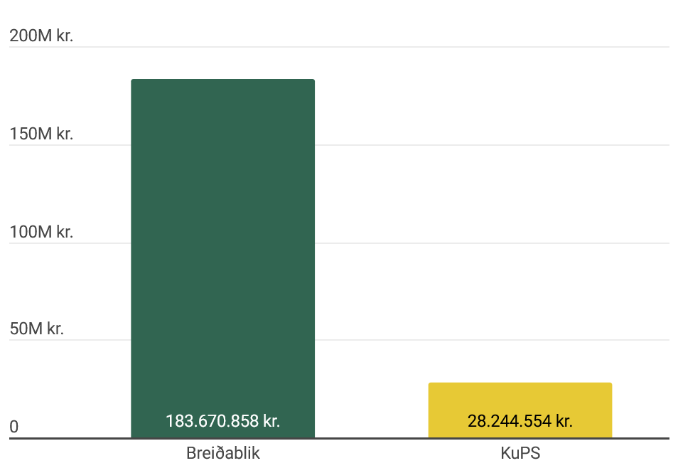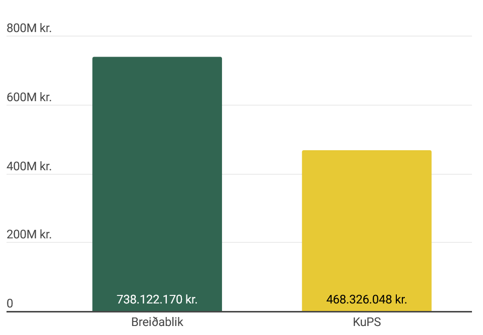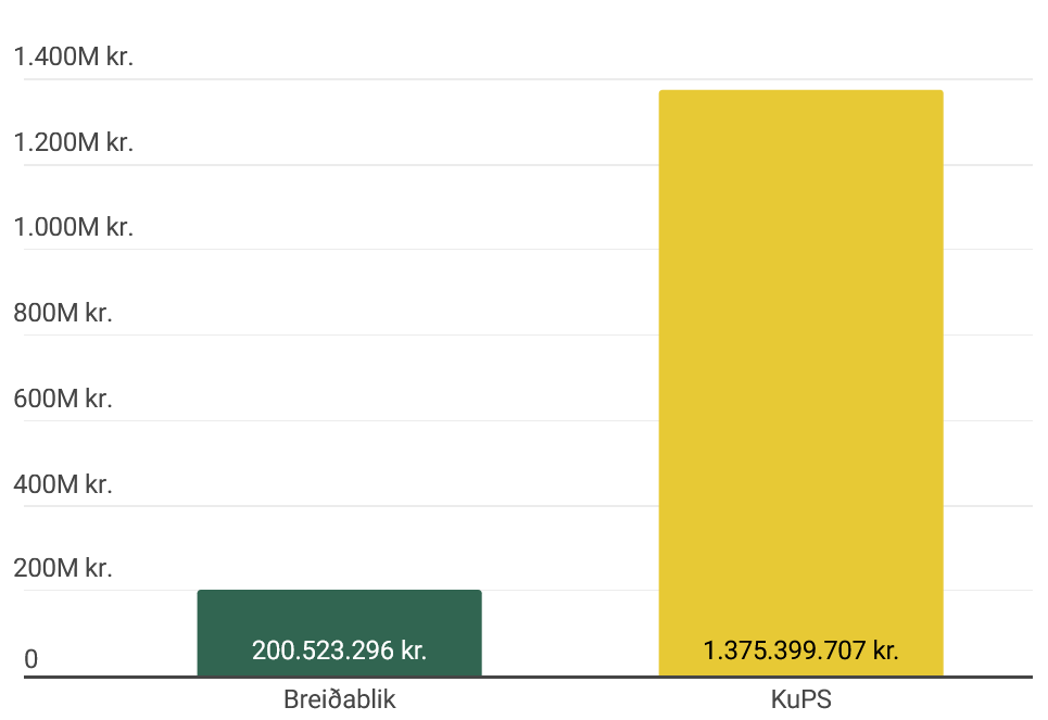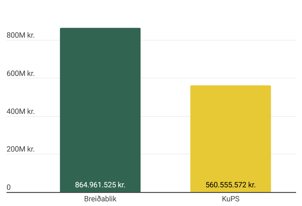 Þá voru skuldir KuPS tæpir 1,4 milljarðar króna á síðasta ári eða rúmlega 585,9% hærri en skuldir Breiðabliks sem voru 200,5 milljónir króna.