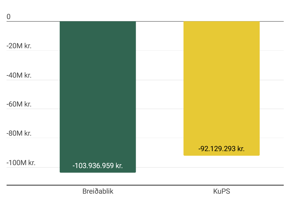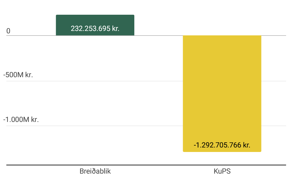 Eigið fé Breiðabliks var jákvætt um 232,3 milljónir króna en eigið fé KuPS var neikvætt um tæplega 1,3 milljarða króna.