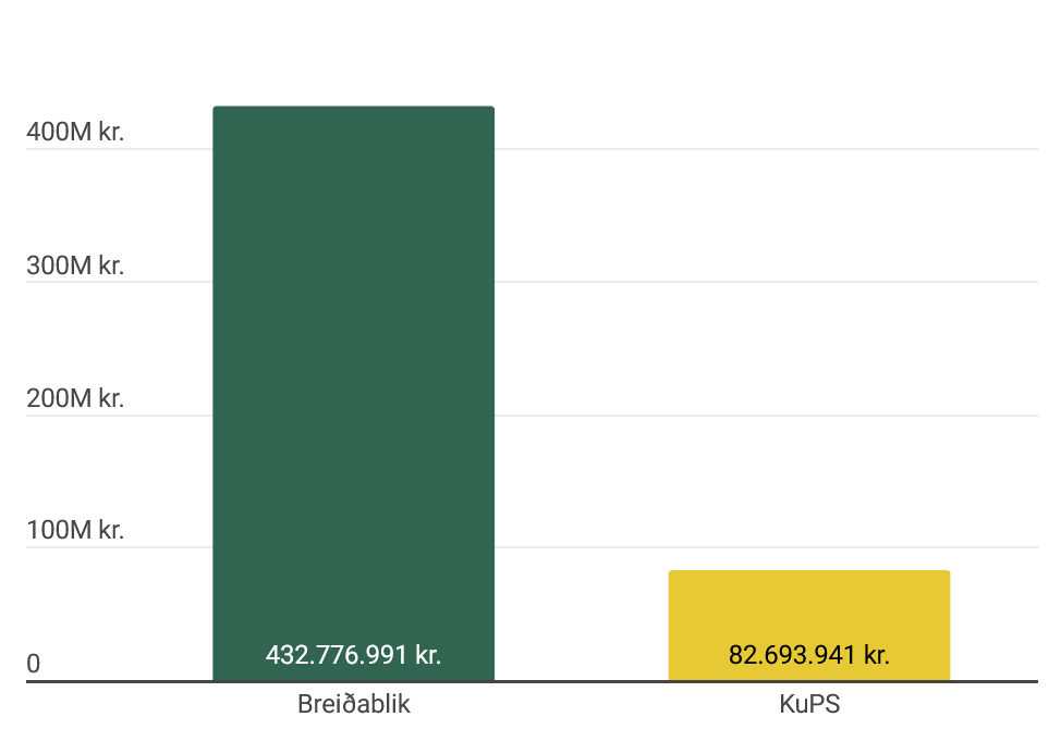 Eignir Breiðabliks námu 432,8 milljónum króna og voru 423,3% hærri en eignir KuPS sem námu 82,7 milljónum króna.