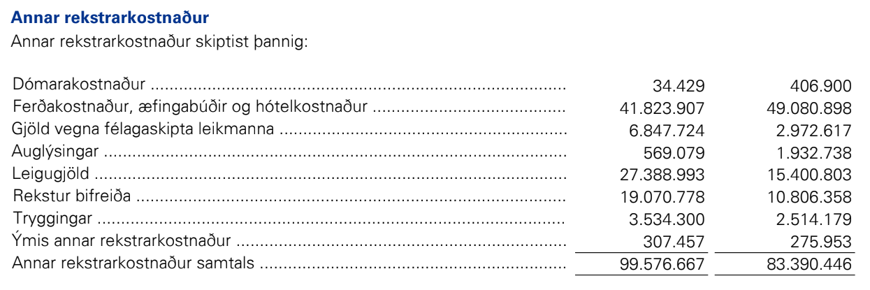 Þar á eftir er næststærsti tekjuliður Vals aðrar rekstrartekjur, tæplega þriðjungur rekstrartekna. Í skýringum má sjá að þær tekjur koma að stærstum hluta frá UEFA, eða rúmlega 181 milljón króna af 208 milljónum króna.