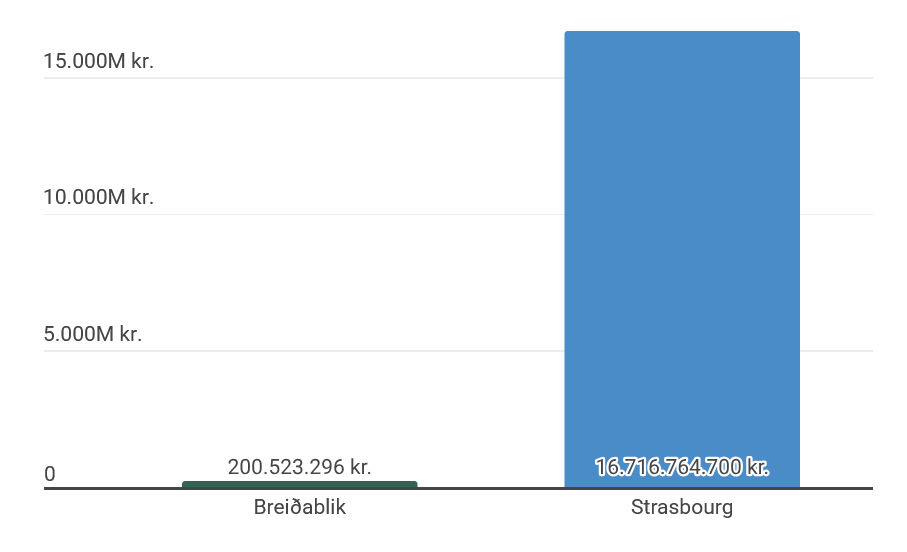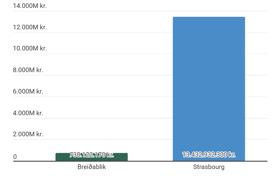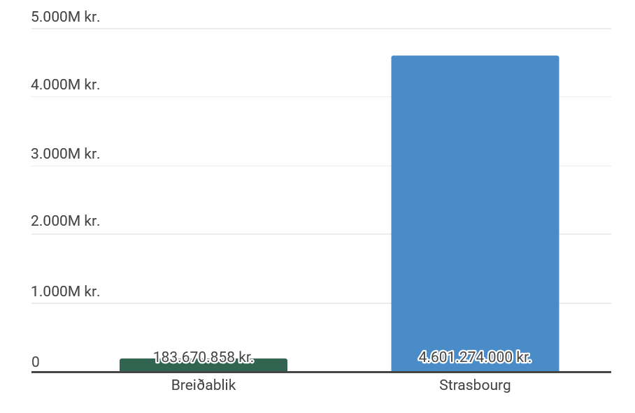 Eignir Strasbourg námu 18,7 milljörðum króna og voru 4.223% hærri en eignir Breiðabliks sem námu 432,8 milljónum króna.
