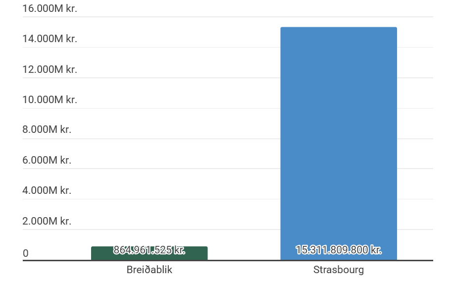 Rekstrargjöld Strasbourg voru 15,3 milljarðar króna og voru 1.670% hærri en rekstrargjöld Breiðabliks sem námu tæpum 865 milljónum króna.