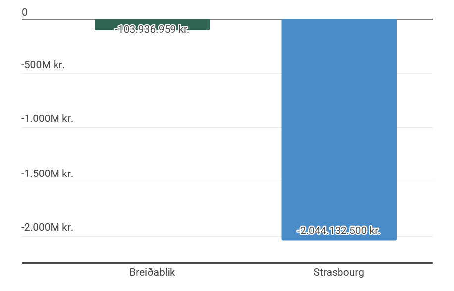 Bæði félögin voru rekin með tapi á síðasta ári en tapið hjá Strasbourg nam tæplega 2 milljörðum króna á meðan Breiðablik tapaði rúmlega 104 milljónum króna.