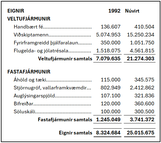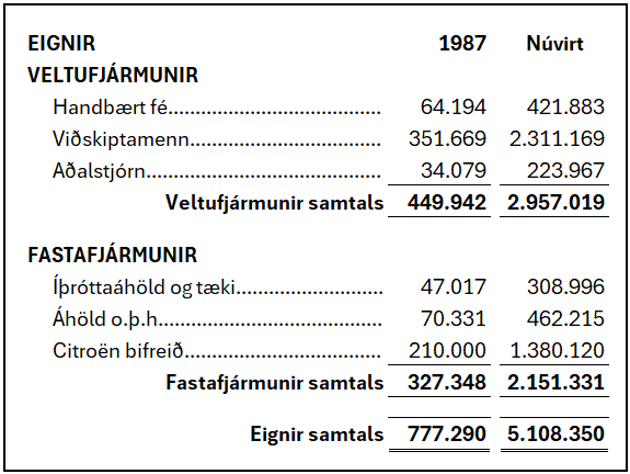 9,7 milljónir króna í eignir árið 1995 á núvirði er minna en eignfærðir rekstrarfjármunir Víkings árið 2024, sem eru 11 milljónir króna.