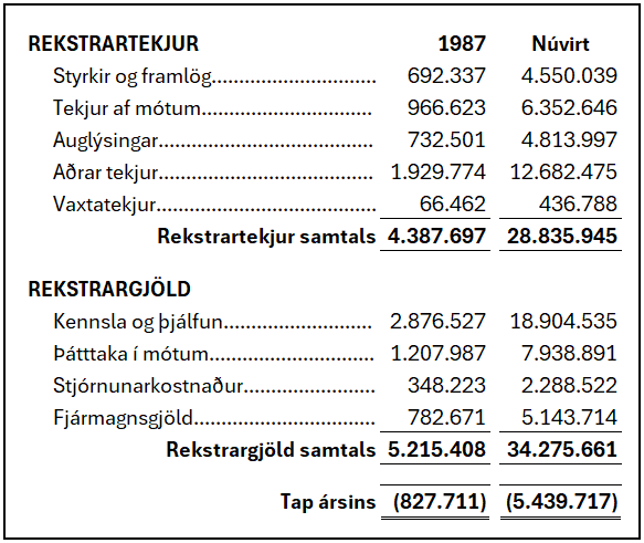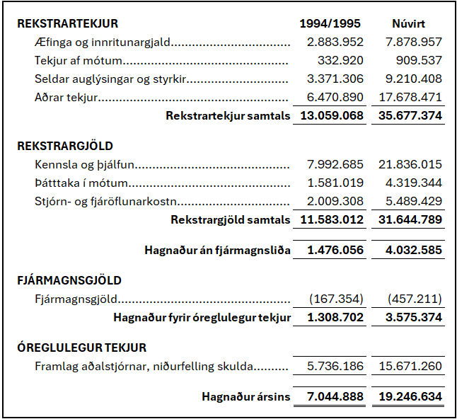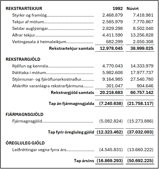Rekstrargjöldin árið 1995 væru 31 milljón króna á núvirði sem er ca. 3,6% af rekstrargjöldum Víkings 2024, sem voru 853 milljónir króna.