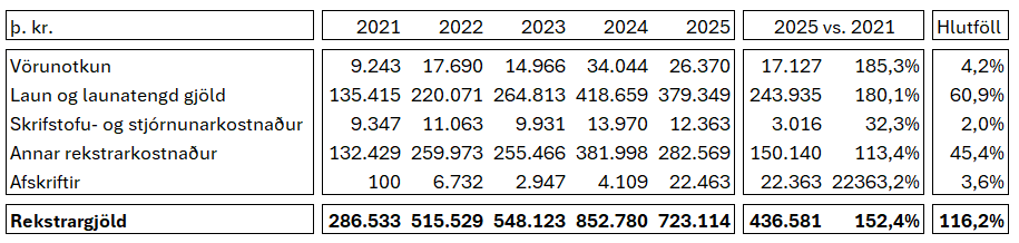 Annar rekstrarkostnaður var næststærsti útgjaldaliður Víkings árið 2025. Í skýringum ársreikningsins má finna sundurliðun á honum þar sem ýmis kostnaður kemur fram. Það áhugaverðasta er sennilega þær 17 milljónir sem Víkingur eyddi í vallarleiga fyrir Sambandsdeildina. Víkingur tók Bolt Arena í Helsinki á leigu fyrir viðureign þeirra gegn Panathinaikos í febrúar 2025. Árið áður hafði félagið tekið Kópavogsvöll á leigu fyrir heimaleiki sína í deildarkeppni Sambandsdeildarinnar, það kostaði 12,7 milljónir króna.